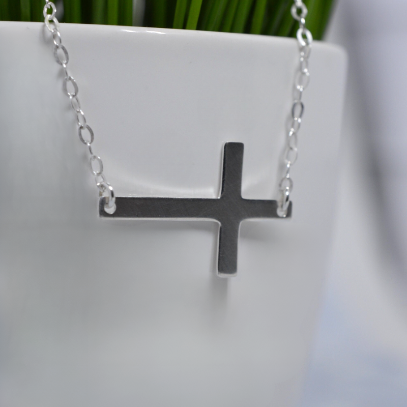 Sterling Silver Sideways Cross Necklace